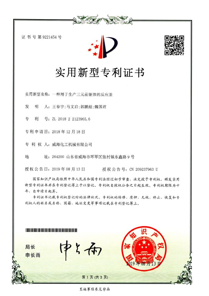 截止2024年擁有高壓反應釜領域授權專利共95項,其中發明專利19項、實用新型專利69項、外觀專利7項,并持續在高壓反應釜領域開展關鍵核心技術攻關