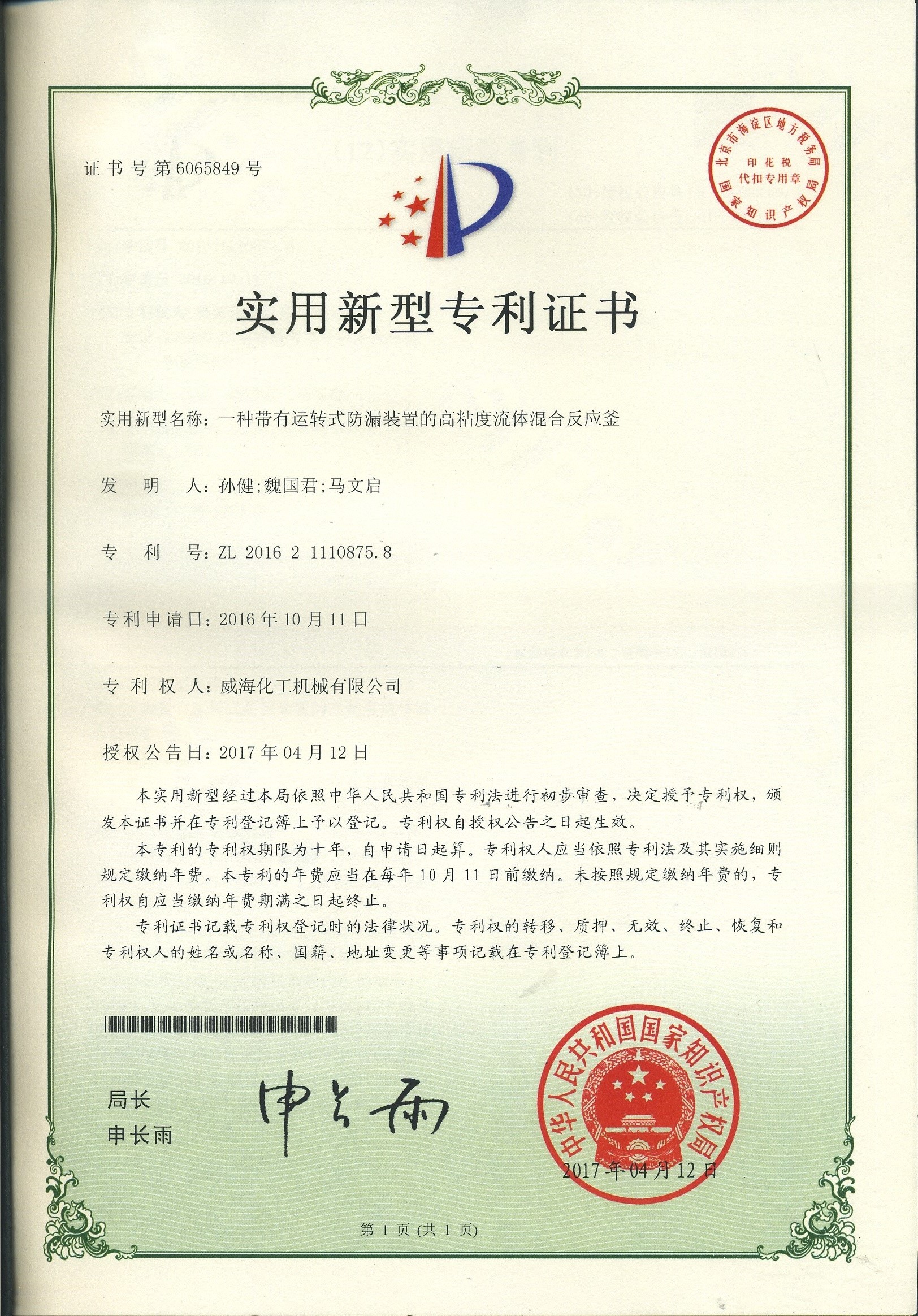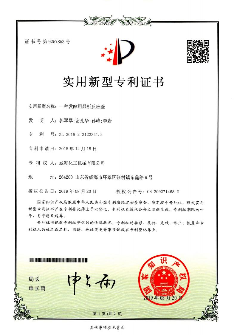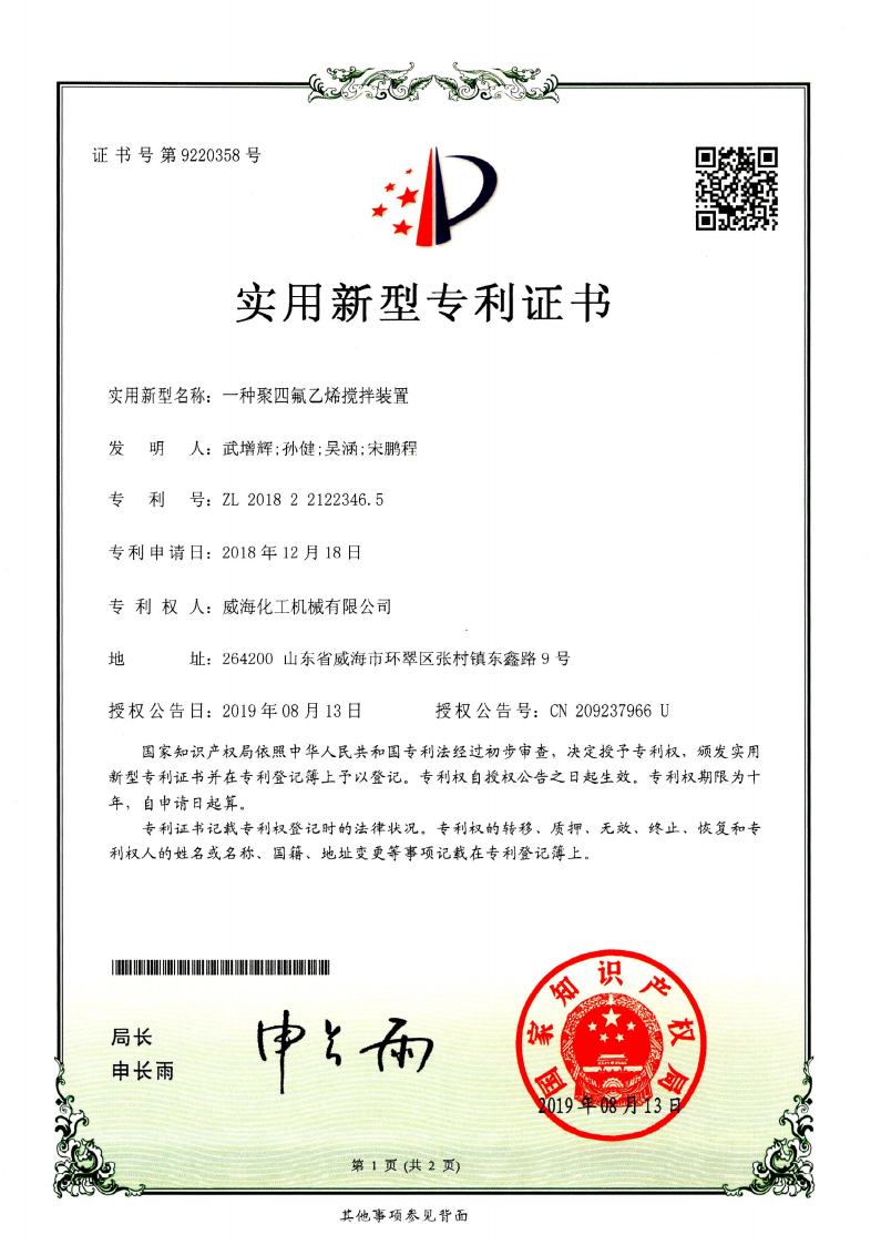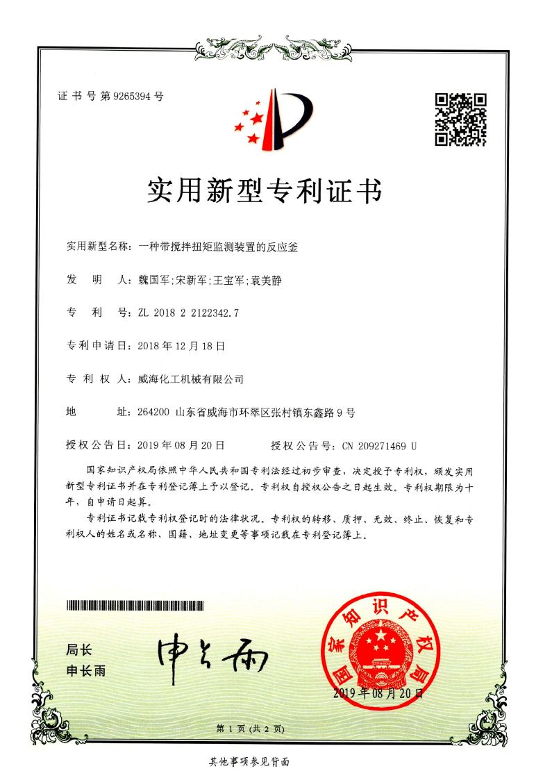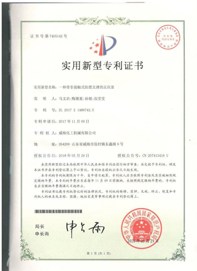 公司建有磁力驅動測試試驗室、攪拌模擬試驗室、反應釜流體混合攪拌重點實驗室等,科研力量雄厚。截至2024年,公司共承擔近280項自主/合作開發任務,先后承擔省級新產品開發任務25項,其中23項產品已達到國內水平。獲得各類省、市級技術創新獎30余項;參與起草、修訂標準共8項,GB/T30098-2013實驗室用磁力驅動反應釜標準、HG/T3648-2011磁力驅動反應釜標準、GB/T29254-2012實驗室反應釜用控制器標準、NB/T47002.1~47002.4-2019壓力容器用復合板;已獲得授權專利95項,其中發明專利19項,實用新型專利69項,外觀專利7項;擁有專有技術和核心技術40余項。