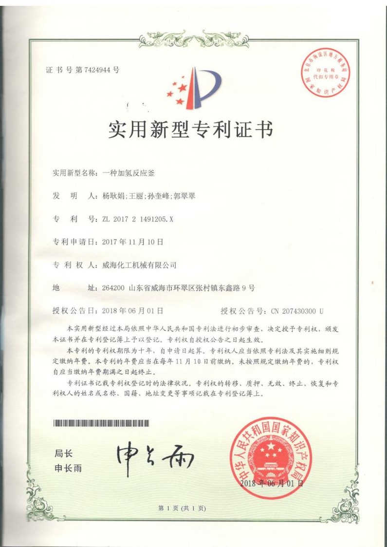 實用新型專利一種反應釜用…